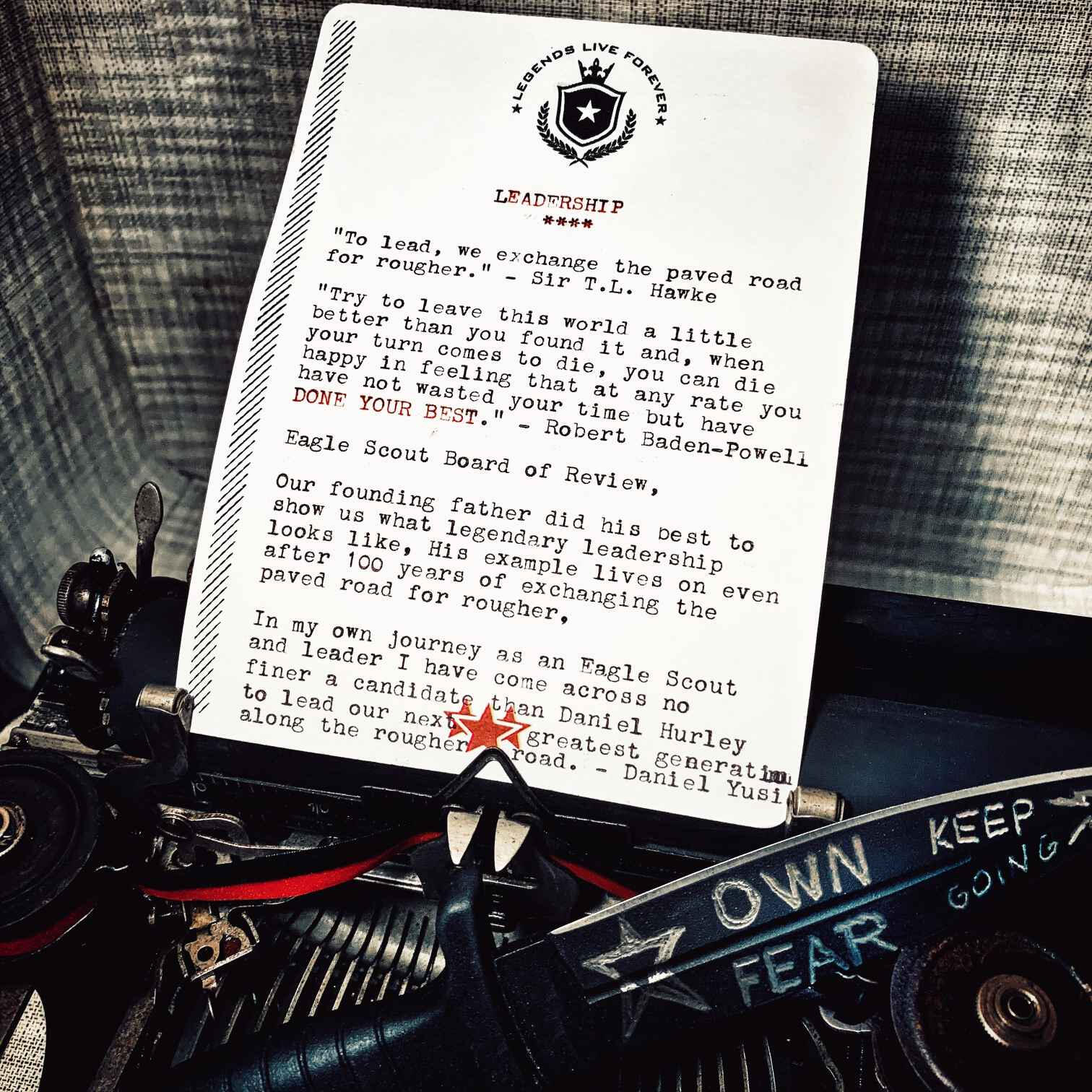 – of a dream, promise, goal, standard, purpose, legacy, identity.