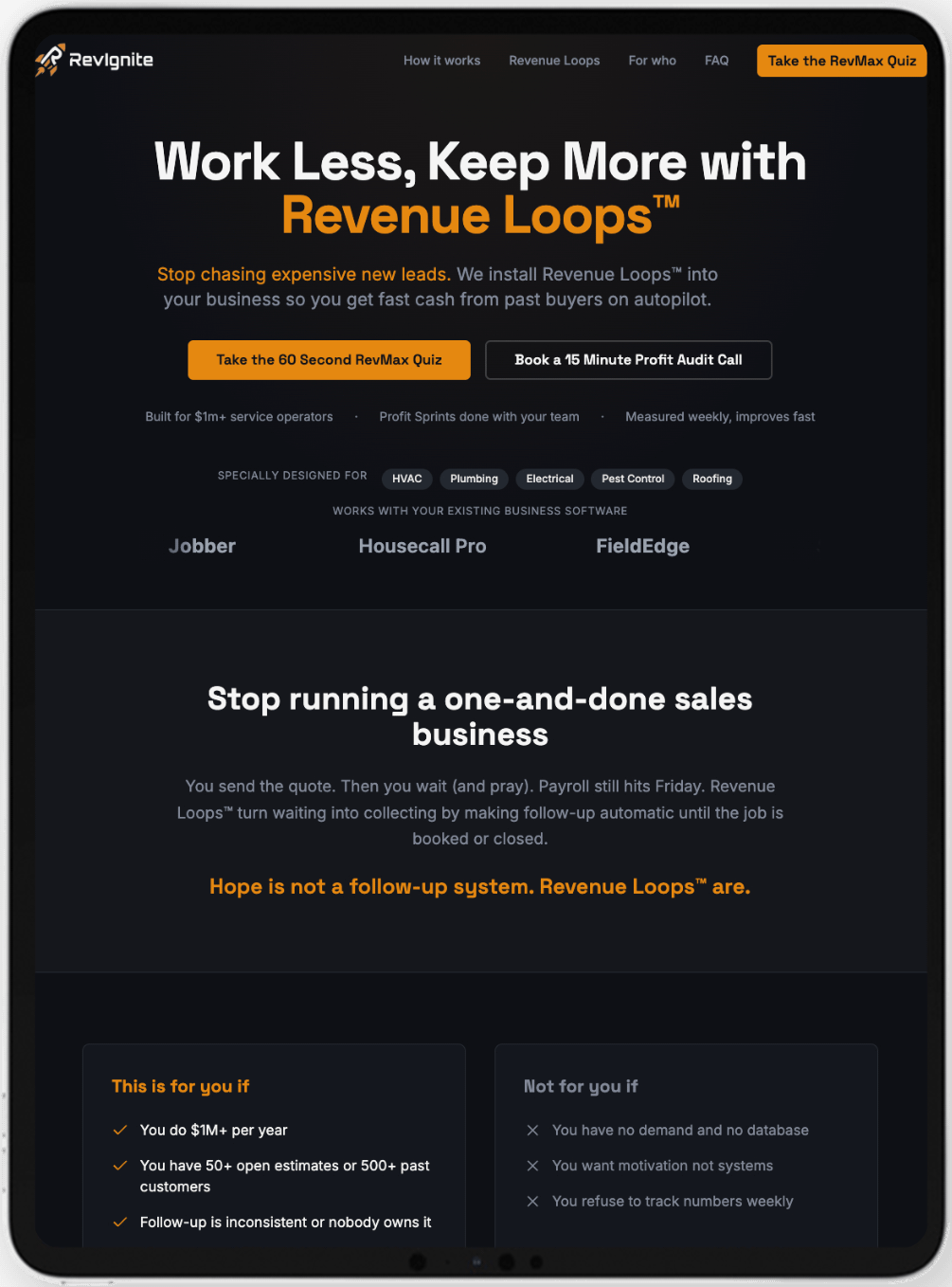 Rev Nation believes in max profit = it's not what you make but what you keep that matters most. Revenue for vanity, profit for sanity.Our enemy is one and done sales.We install Revenue Loops™ into your business so cash keeps coming in without you chasing it.We build an always-on "business brain" AI Copilot that suggests the next right action so your staff stays productive & you maximize profits & manage your AI Coworker teams so you get 100x results 24/7.