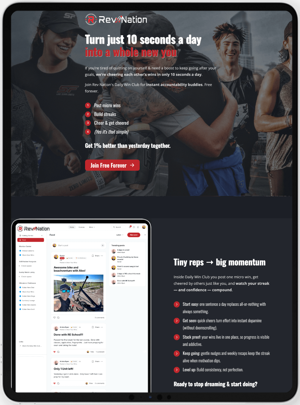 If you're tired of quitting on yourself & need a boost to keep going after your goals, we're cheering each other's wins in only 10 seconds a day.Join Daily Win Club for instant accountability buddies. Free forever.